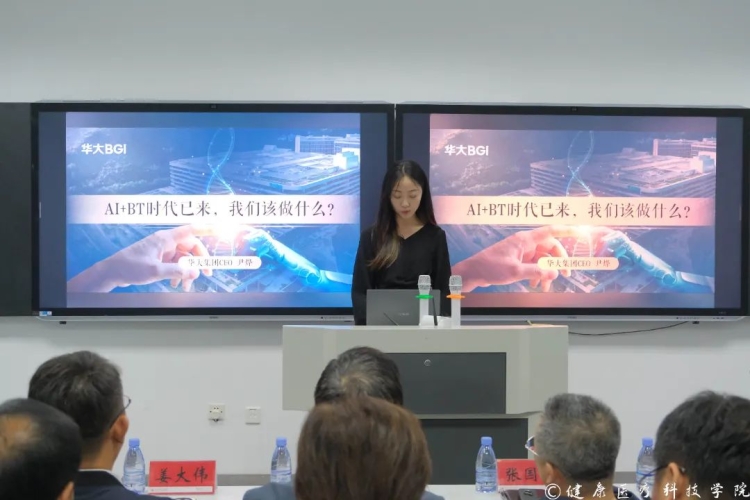 为进一步增强师生对AI(人工智能)与BT(生物技术)融合发展前沿热点的了解,拓宽思维、视野,激励广大青年学子躬耕学术科研、积极创新创业、笃定勇毅前行,努力成为实现中华民族伟大复兴的先锋力量。2024年9月26日晚19:00,健康医疗科技学院在软件园校区A5-208教室组织师生通过网络平台共同学习观看了由中共辽宁省委教育工作委员会主办,华大集团首席执行官尹烨教授汇报的《AI+BT时代已来,我们该做什么?》专题讲座。本次活动得到了学校党委的高度重视,学校党委书记张国臣,党委副书记/副校长任昊,党委学生工作部长李伟,健康医疗科技学院院长刘龙、副院长孙风栋,以及各二级学院党委书记、副书记亲临现场,与来自健康医疗科技学院130余名学生代表共同聆听这场科技与思想碰撞的盛会。