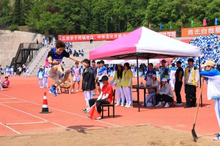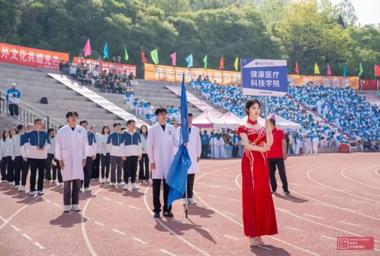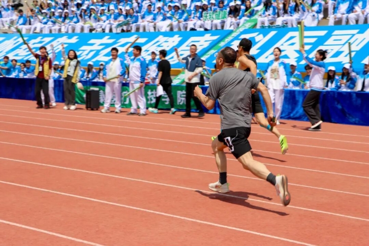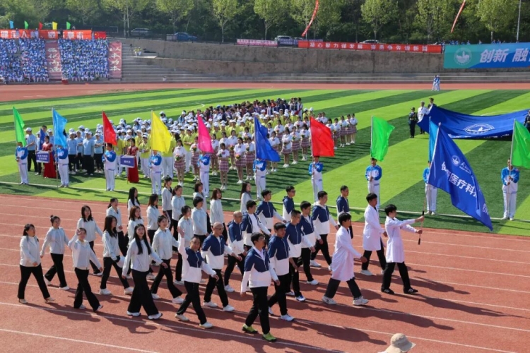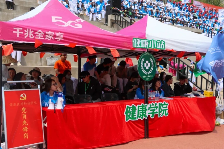 赛场布置井然有序,处处洋溢着热烈氛围。主席台两侧,院旗在微风中舒展飘扬,“扬帆起航,志在健康,科医融合,逐梦远方”的标语与蓝天白云相映,灼灼闪耀着信念的光芒。那些即将迸发的欢呼,早已在空气里酝酿着沸腾的期待。