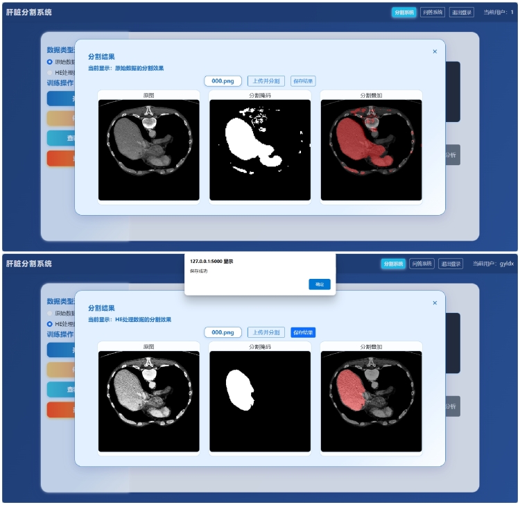 (1)技术创新:本系统在医学图像分割与智能问答的融合创新上具有明显优势。系统实现了原始与HE增强两种数据流的分割方案,针对不同影像特征自适应调整分割策略,提升了模型对复杂肝脏影像的适应性和分割精度。HE增强算法的引入,不仅优化了边缘检测能力,还为模型提供了更丰富的判别特征,适合处理边界模糊、对比度低的实际临床影像。这一创新大大拓宽了分割模型的应用场景,为医学影像领域的多样化数据处理提供了新思路。