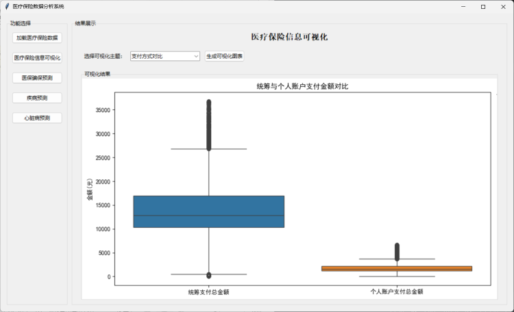 作品简介:本项目深度融合医保智能监管与疾病预测功能,通过Python技术栈实现医保数据多维度可视化分析、骗保行为智能识别及心脏病风险预测。系统整合UCI医疗数据集与真实医保数据,采用KNN与随机森林双模型对比分析,构建基于Tkinter的交互式平台,为医保基金监管和疾病早期干预提供数据驱动的决策支持。