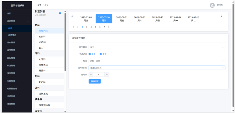 作品简介:本项目开发了一个简单高效便捷的医院挂号系统,系统用户包括管理端、医生端和用户端。管理端主要功能包括对医生排班管理,医生端功能包括查看预约,用户端提供在线挂号等核心功能。通过该系统,患者可以随时随地通过手机进行挂号预约,避免现场排队等待,节省就诊时间;同时,该项目提供医生排班信息的实时更新,帮助患者合理安排就诊时间,提升就诊体验。此外,该项目提供数据统计分析功能,能够帮助管理员高效查看医院各项排班信息。优化资源配置,提高医疗服务效率和办理水平。