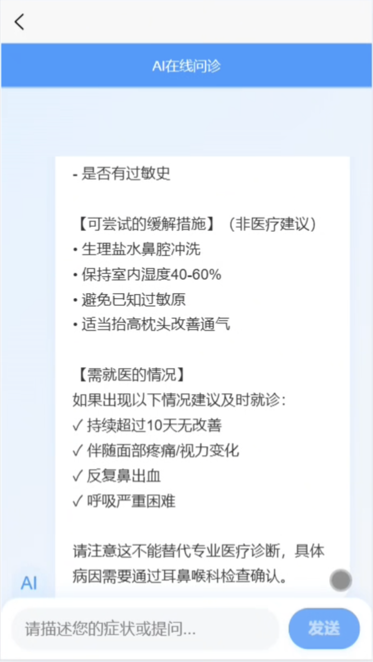 (1)AI在线问诊:在用户端引入AI在线问诊功能,用户可以进行简单的咨询。