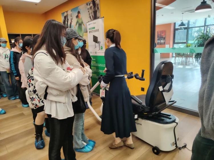 学生在智能康复训练仪仔细端详