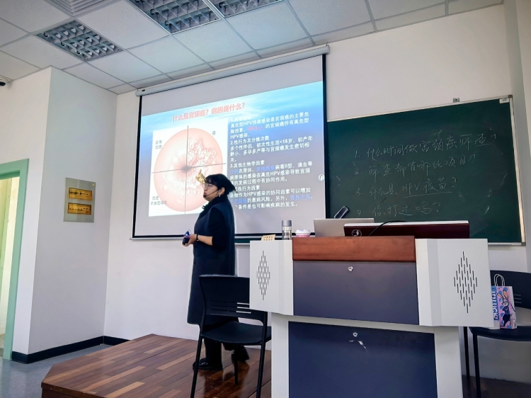 为唤醒防护意识,她分享《深渊病例》真实临床资料,通过一名女性从 HPV16 型持续感染发展为宫颈病变的全过程,以直观病程与真实数据阐明定期筛查、分型检测及尽早接种疫苗的重要性,警示力远超教科书。谈及接种相关问题,她结合自身接种经历分享全过程,印证疫苗安全性与有效性,强调 “越早接种效果越好,性行为前接种防护最全面” 的核心观点。这种 “专业解读 + 个人体验” 的模式打破沟通壁垒,有效化解学生顾虑,不少学生当场明确接种意愿。